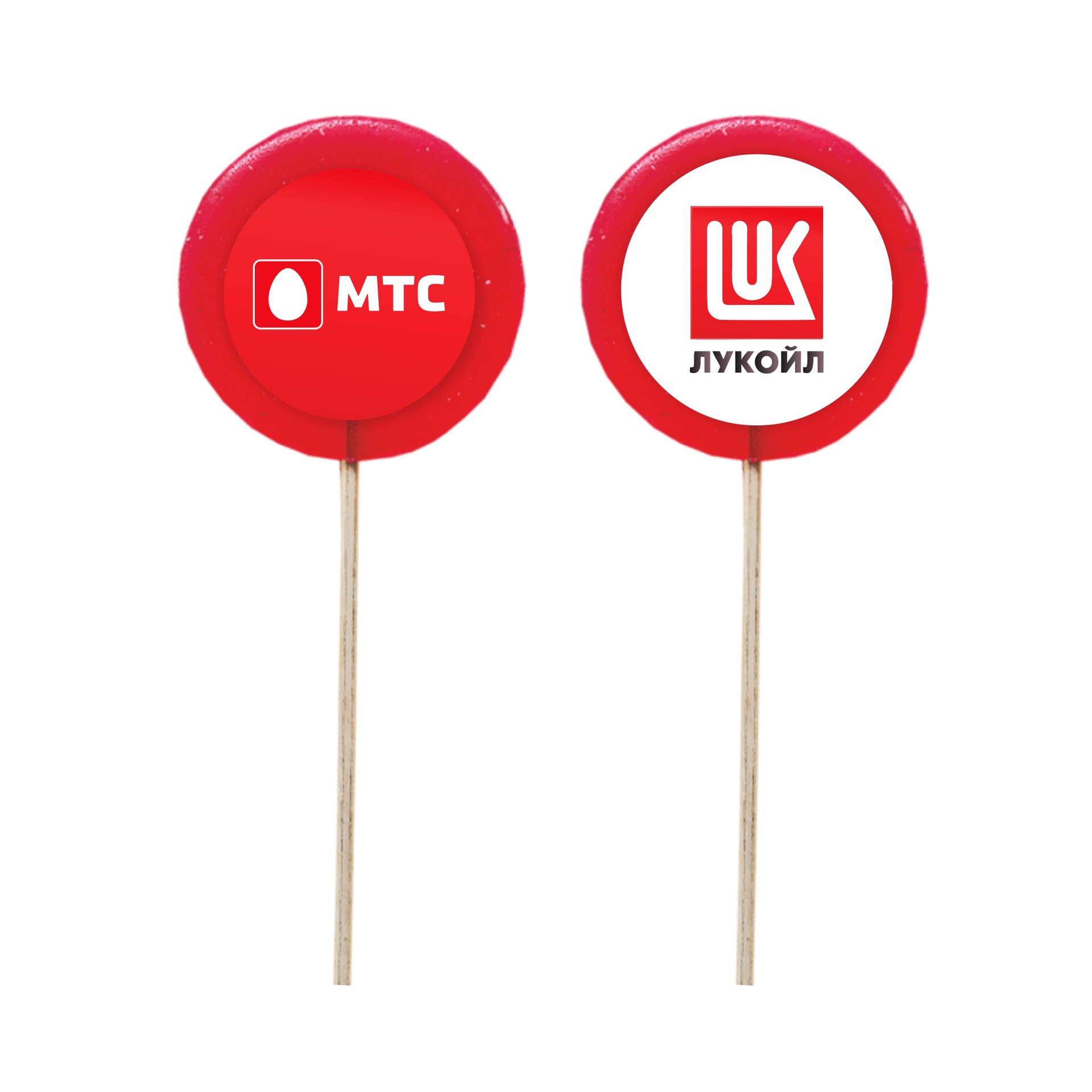 На ваш выбор: логотип, размер, цвет и вкус леденца