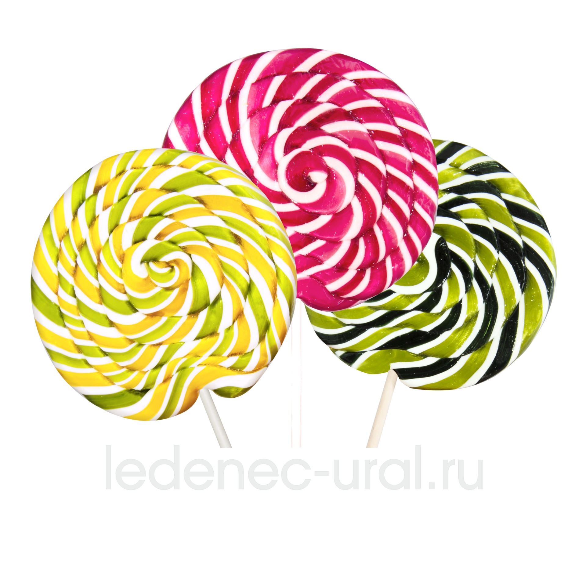 Параметры конфеты: Вес 35 гр. Диаметр 35 мм. Палочка деревянная: длина 15 см, ширина 3 мм. Леденец упакован в индивидуальный полиэтиленовый пакетик.